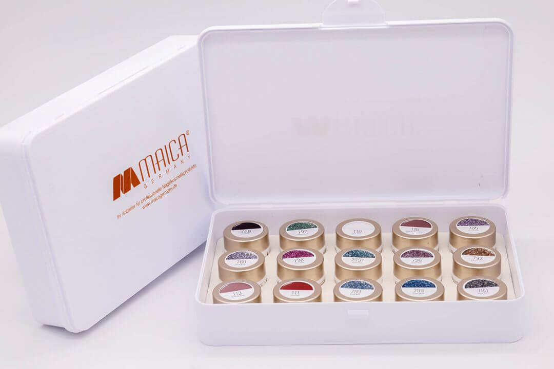 Bewahren Sie in dieser weißen Box bis zu 20 Gel Behälter á 10 g oder mehrere größere Arbeitsmaterialien auf.