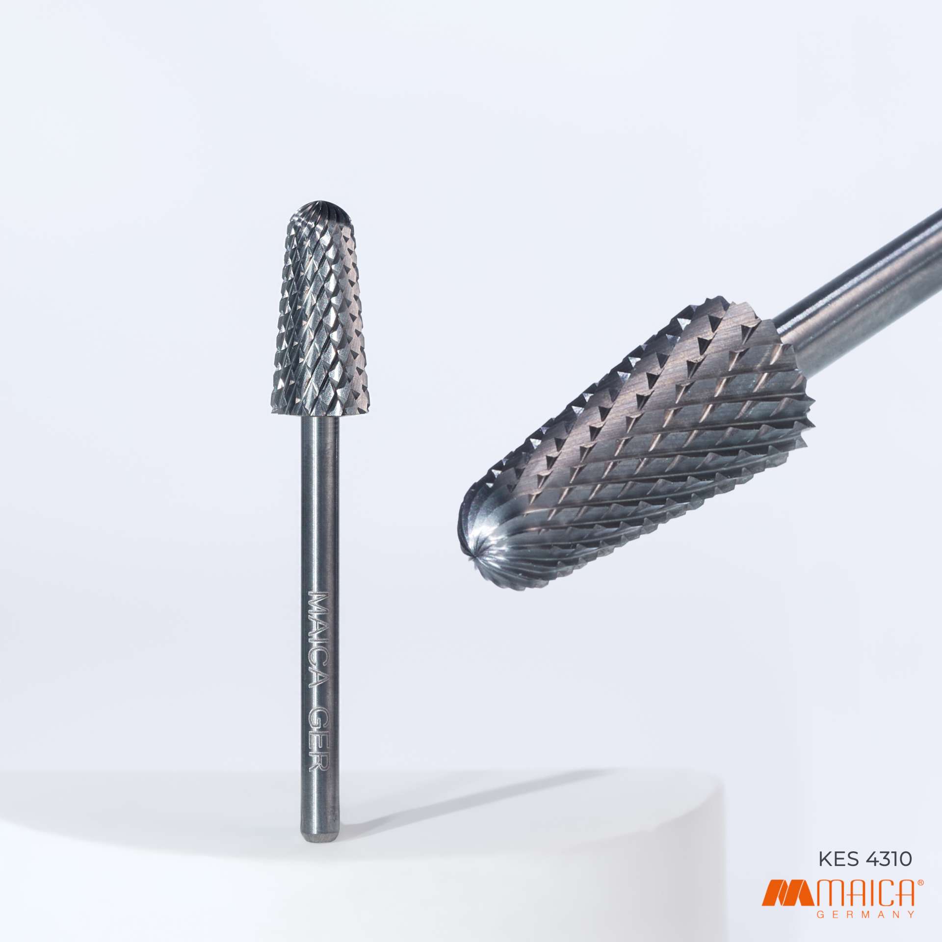 Vollhartmetall Kegelfräser mit Schneidspitze, Kreuzverzahnung.