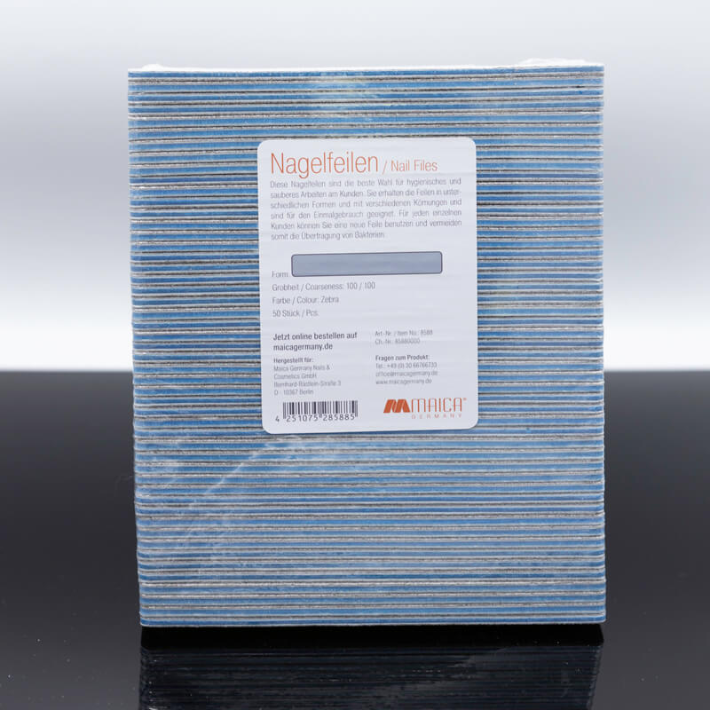Mit dem Maica Germany Nagelfeile Rechteckig Grau 100/100 – 50 Stk. lassen sich Natur- oder Kunstnägel kurzfeilen sowie in formfeilen.
